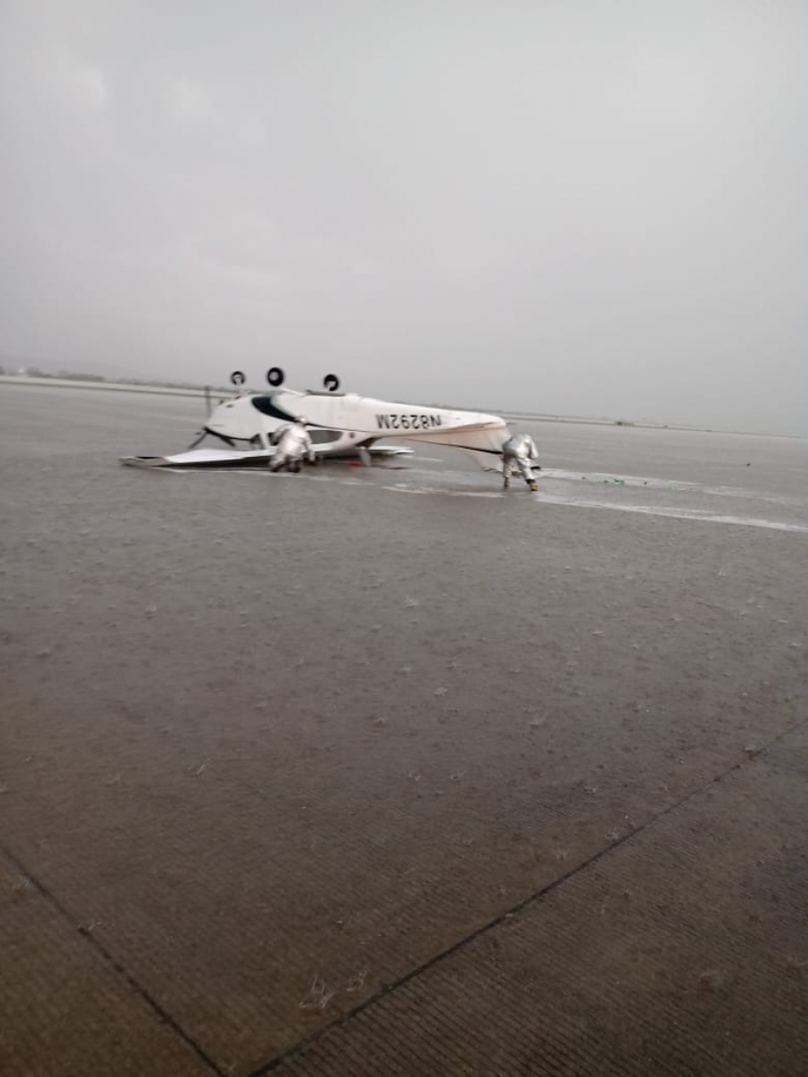 - Se volcó una aeronave ligera.