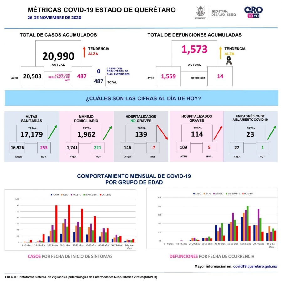 En el estado se suman 487 casos de COVID-19; se trata de 256 mujeres, entre ellas una de siete meses y 250 hombres, entre ellos dos de tres años.