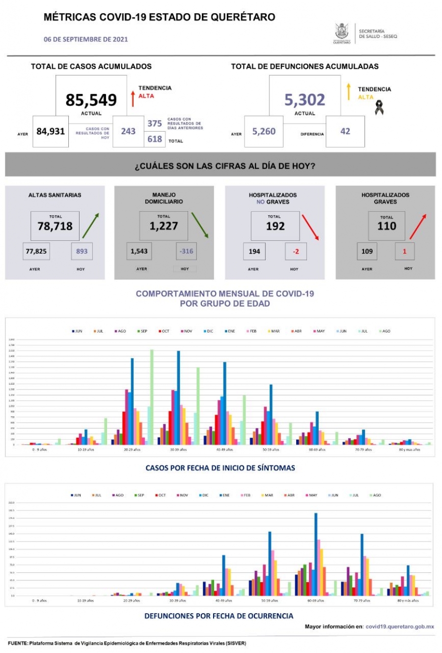 Querétaro con 85 mil 549 casos de COVID-19