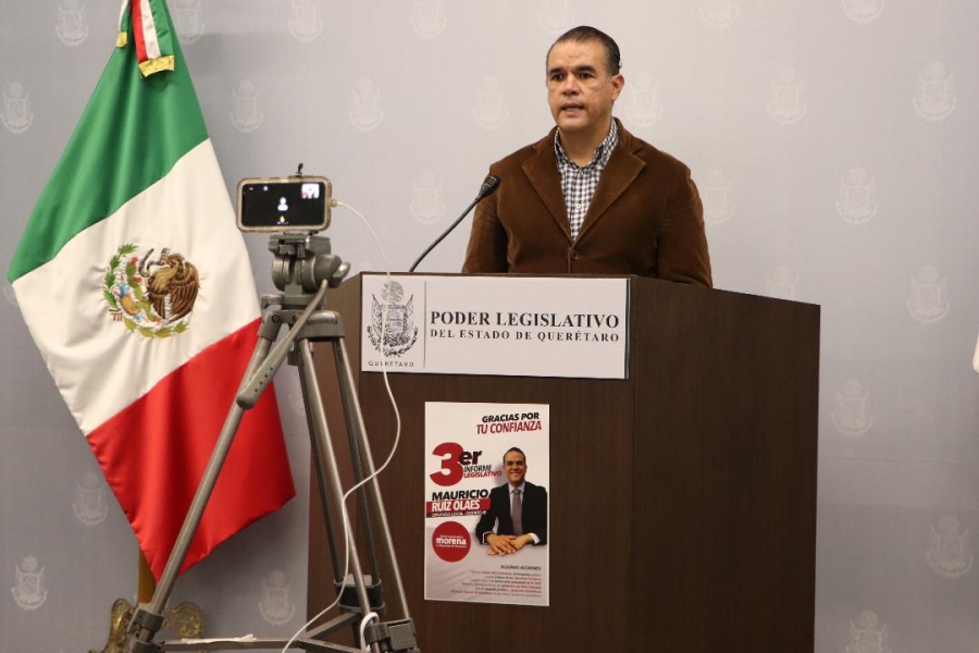 Santiago de Querétaro, Qro., 11 de agosto de 2021. El diputado Mauricio Ruiz Olaes del Grupo Legislativo de Morena en la LIX Legislatura del Estado de Querétaro, presentó ante los representantes de los medios de comunicación su Tercer Informe Legislativo, e informó que en los próximos días estará con la ciudadanía, recorriendo el Tercer Distrito local, a fin de rendir cuentas y cumplir legamente con la Ley Orgánica del Poder Legislativo.