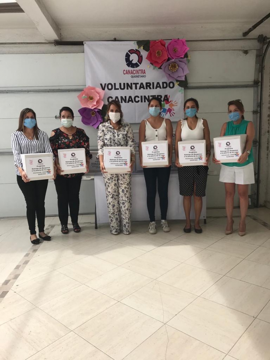 El Voluntariado de Damas de CANACINTRA Querétaro, presidido por Lourdes Barrios Pérez, entregó más de 400 despensas a familias de trabajadores que debido a la contingencia, se quedaron sin trabajo.