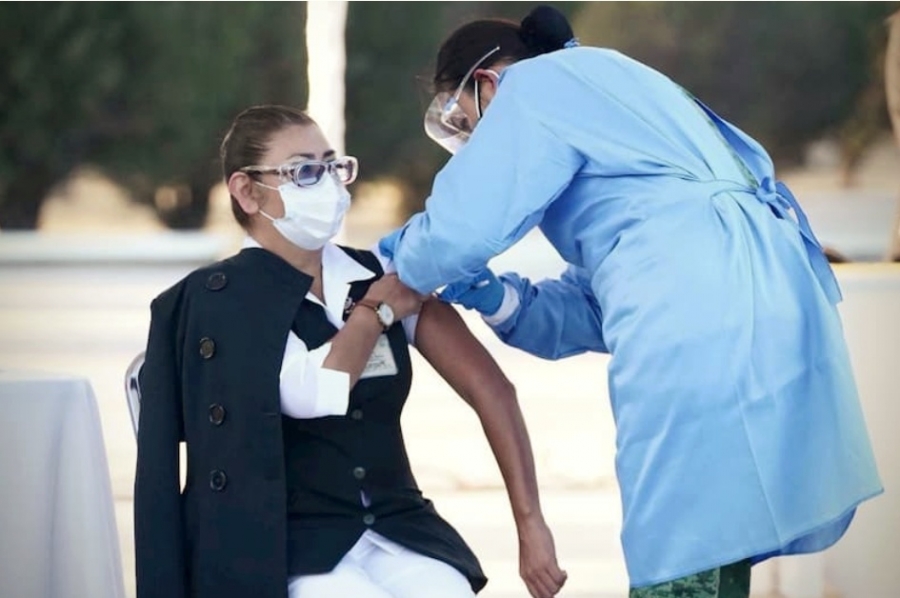 El director general del Instituto Mexicano Seguro Social, Zoé Robledo, encabezó el arranque de la vacunación contra COVID-19 para el personal de salud desde el Cuarto Regimiento Blindado de Reconocimiento de la 17 Zona Militar, en Querétaro.