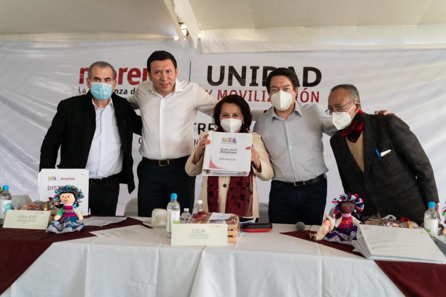Querétaro, Qro. Juan José Jiménez, quien contendiera en la encuesta interna de morena para la candidatura a la gubertura de Querétaro, entregó de manera formal la estrutura de sus Unidades de Enlace que formó en el estado de Querétaro a la precandidata Celia Maya, en donde se contó como testigo de honor a Mario Delgado, Presidente del Comité Ejecutivo Nacional de dicho partido.