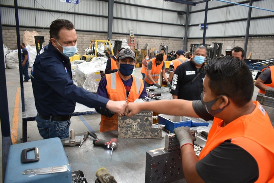 El candidato a la gubernatura del estado, Mauricio Kuri González, tuvo un encuentro con trabajadores de la empresa Remeta, en el municipio de Colón, donde presentó sus propuestas y se comprometió a que, en su administración, en caso de obtener la mayoría de votos, Querétaro será el motor de México a través de acciones y políticas públicas para que más empresas reutilicen la materia prima.