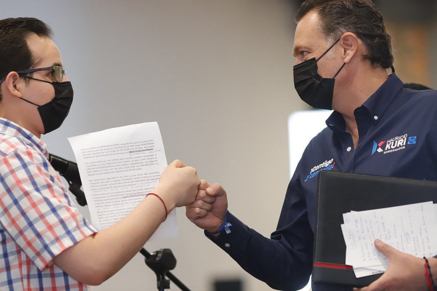 Querétaro, Qro., 25 de mayo de 2021.- El candidato al gobierno de Querétaro, Mauricio Kuri González, afirmó, en entrevista con medios de comunicación, que las personas con discapacidad son el mayor ejemplo de fortaleza queretana, ya que son modelo de esfuerzo para todas y todos, pues sin importar los desafíos que se presenten, saben hacerles frente y dan lecciones de que no existen obstáculos imposibles de superar; por ello, aseguró que su compromiso será absoluto con el desarrollo inteligente e inclusivo.