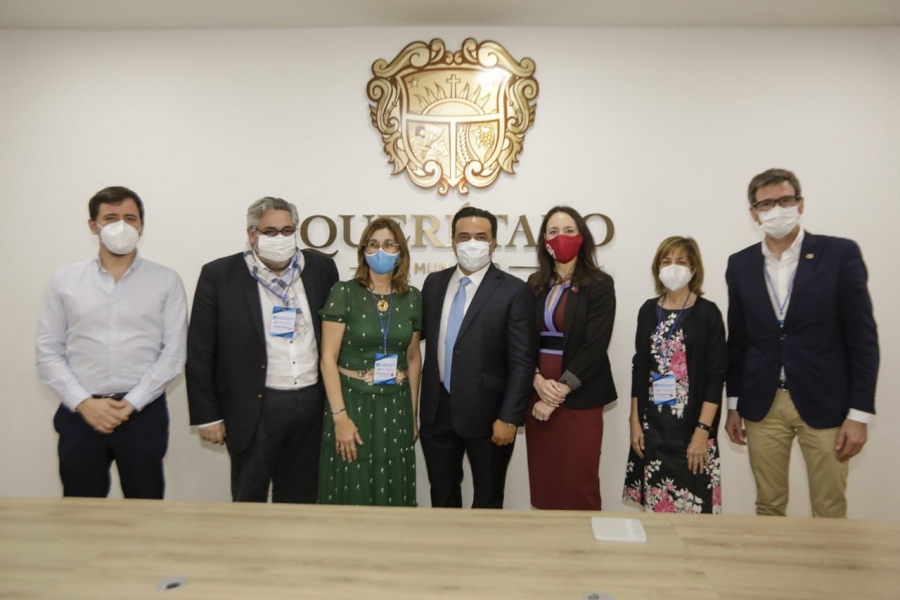 Santiago de Querétaro, Qro., jueves 17 de marzo del 2022.-Las y los Alcaldes integrantes de la 3ra Conferencia Internacional de Ciudades Michelin se reunieron en el Centro Cívico para celebrar su Asamblea General, además de eligir al nuevo Comité Ejecutivo, donde el Presidente Municipal de Querétaro, Luis Nava, fue ratificado como Co-presidente de la Red.