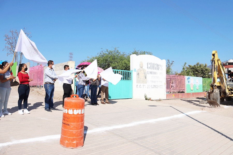 Peñamiller, Qro. abril del 2022.- En Representación del presidente municipal Juan Carlos Linares Aguilar, el secretario general del Ayuntamiento Luis Figueroa, así como la síndico Rocío Balderas, Alma Rosa Manríquez; supervisora de la zona 46, Héctor Jasiel Fortanel; titular de innovación tecnológica del SNTE, Antonio Castillo; coordinador de la región II Cadereyta, así como directores y padres de familia, dieron el banderazo de inicio de los trabajos en el Preescolar "Atanacio Montoya" de la comunidad de Portugués.