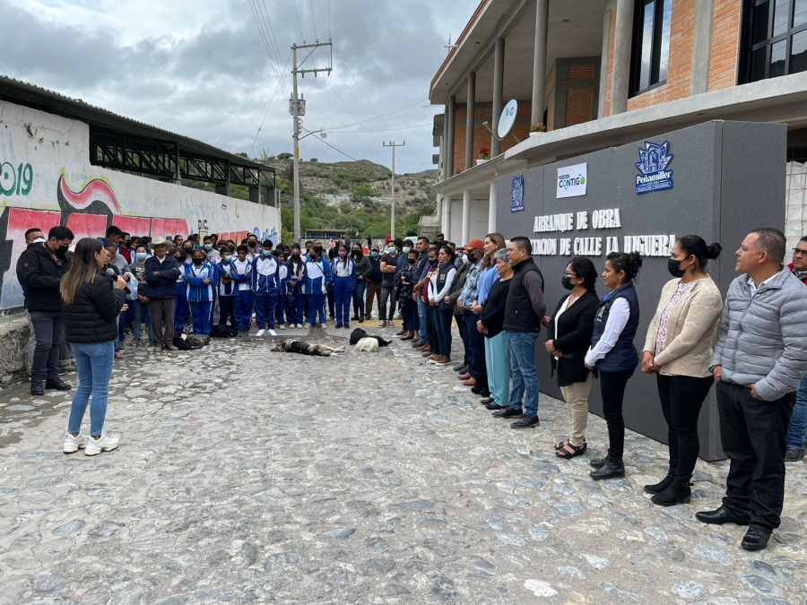 Peñamiller, Qro.- La Diputada Selene Salazar acompañada por la Diputada Federal Sonia Rocha y el Prof. Juan Carlos Linares Aguilar Presidente Municipal de peñamiller, arrancan la obra: Pavimentación de calle principal en la localidad de la Higuera.