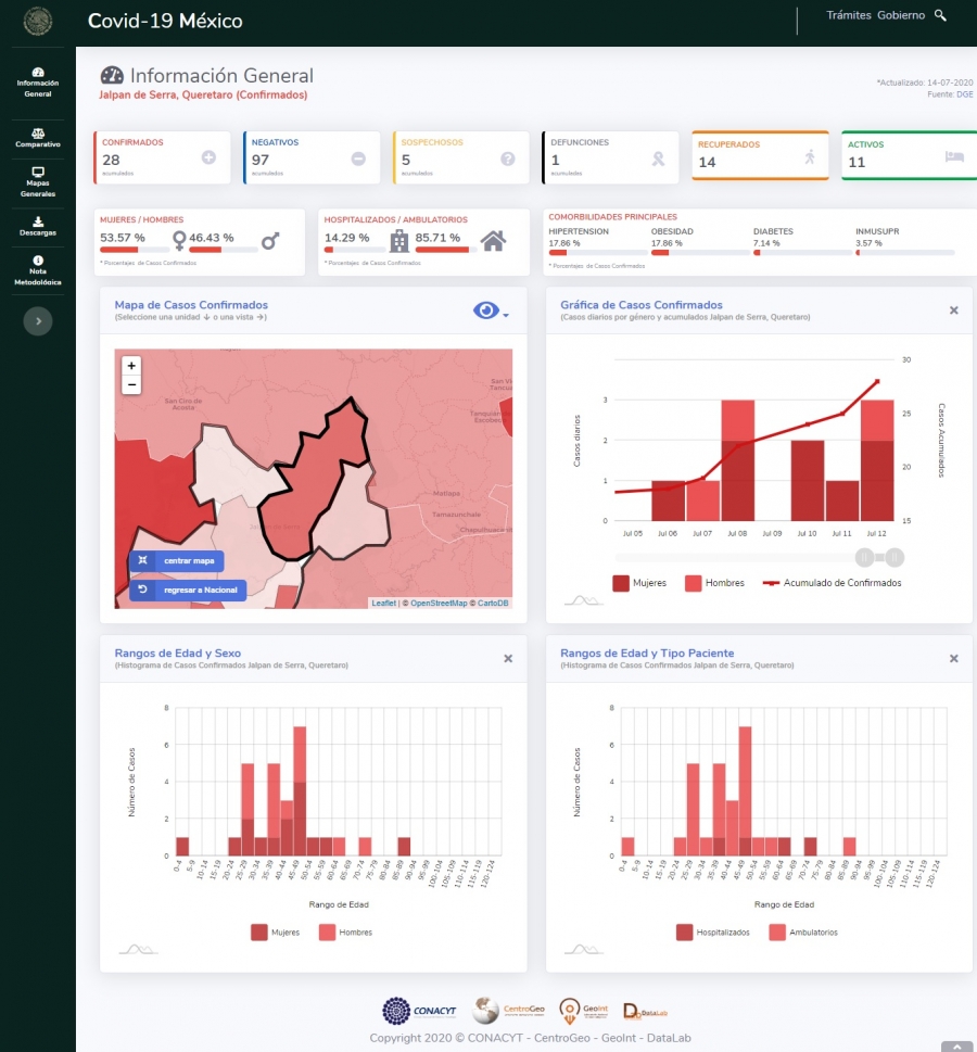 Jalpan de Serra, Qro., martes 14 de julio de 2020.- esta noche, el municipio de Jalpan de Serra reporta 28 casos acumulados de COVID-19 de acuerdo a los datos publicados en la plataforma https://coronavirus.gob.mx/datos/.