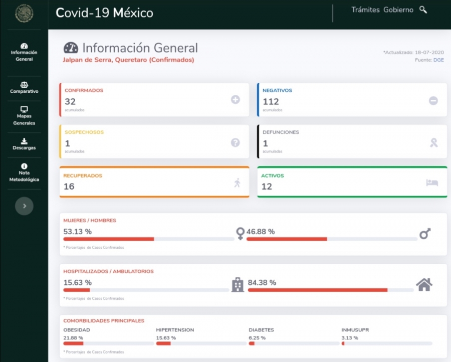 Jalpan de Serra, Qro., Julio del 2020.- Continúan en aumento los casos de COVID-19 en los municipios serranos, en donde al día de ayer sábado 18 de julio este municipio, llegó a los 32 casos, de los cuales aumentaron 3 más en un día.