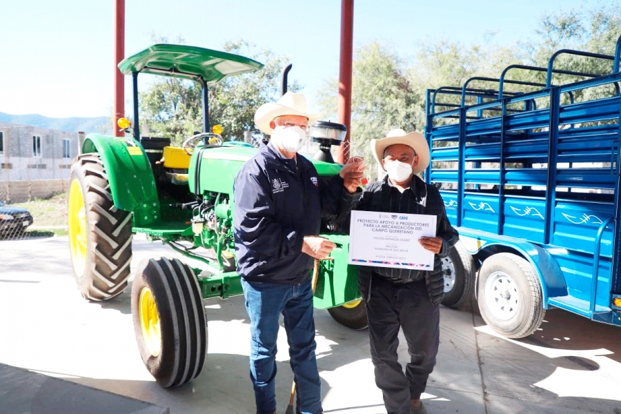 Algunos de los apoyos fueron: tractores, rastras, remolques, depósitos para agua con infraestructura para captación, cerco de alambre y cubiertas de malla sombra para unidad acuícola.