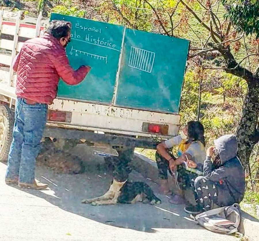 Santiago de Querétaro, Qro.- El profesor pinalense Salvador Olvera Marín, ha sido reconocido nacionalmente por su gran labor que realiza en pro de los niños y niñas pinalenses, esto luego de que se difundiera y se hiciera viral una fotografía de él dando clases en la vía pública y desde su camioneta que le implemento un pizarrón.