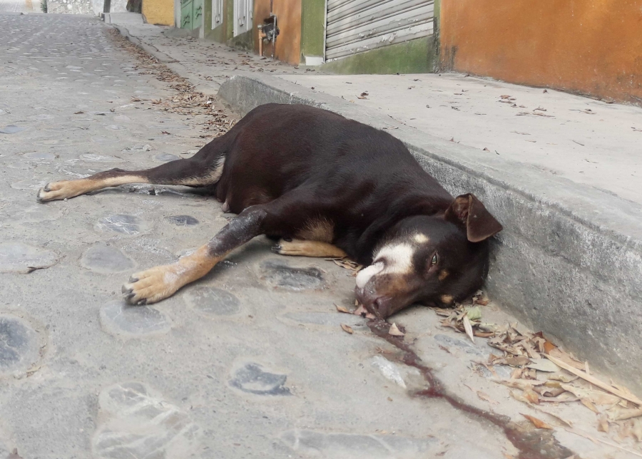 Asimismo, en el Barrio Alcantarillas, la mañana de éste sábado 02 de marzo, en plena calle JiménezVoz de la Sierra pudo captar la escena de un perro, aparentemente envenenado.