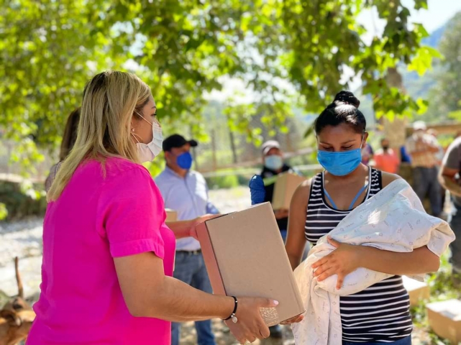La Presidenta Municipal, Lupita Ramírez Plaza, continúa con entrega de despensas, en compañía de la Presidenta del Sistema Municipal DIF, beneficiando a más de 70 familias, de las comunidades afectadas por derrumbes y la creciente del río en Maby de los Reyes y Mohonera.