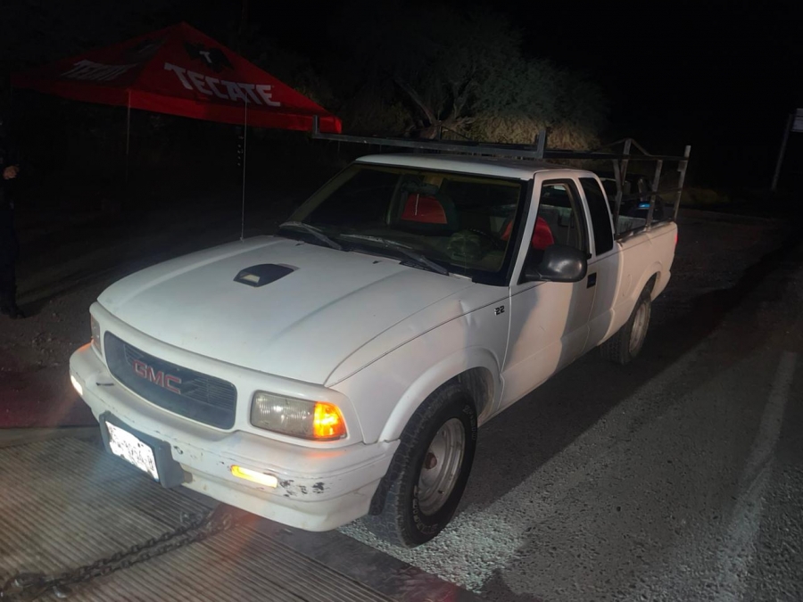 Elementos de la Policía Estatal (PoEs), avistaron circular de manera irregular una camioneta, marca GMC, cabina y media, tipo pick-up, color blanco, cuyo tripulante en la inspección solicitada desprendió marcado aliento alcohólico, por lo que procedieron con su detención.