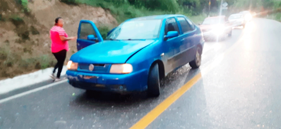El accidente presuntamente se debió a la falta de precaución para manejar con pavimento mojado por lluvia, donde un automóvil en color azul, marca Volkswagen, línea Jetta, circulaba con sentido Pinal-Jalpan, cuya conductora al derrapar se descontrolo y se impactó de frente contra la parte posterior de un vehículo de modelo reciente, marca Hyundai, color gris-plata, con placas de circulación para esta entidad federativa.