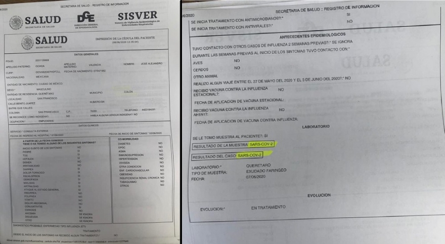 "Hago de su conocimiento que me acaban de entregar los resultados de la prueba la cual resultó ser positiva.