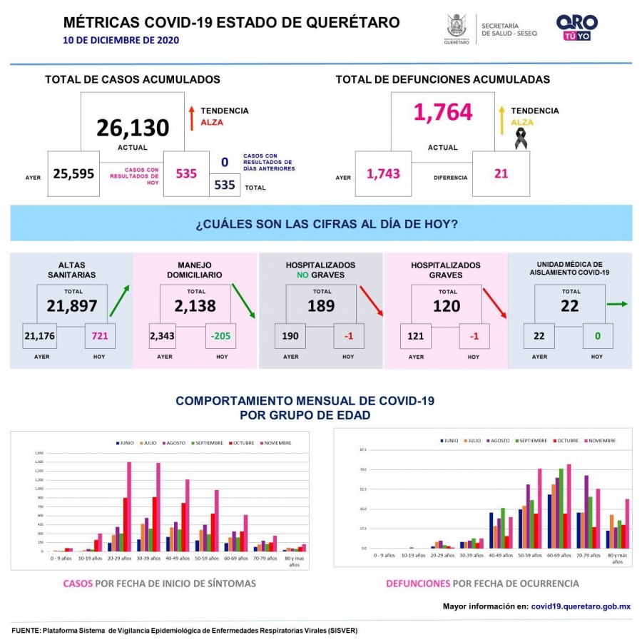 En el estado se suman 535 casos de COVID-19; se trata de 270 mujeres y 265 hombres, entre ellos uno de cuatro y uno de siete años.