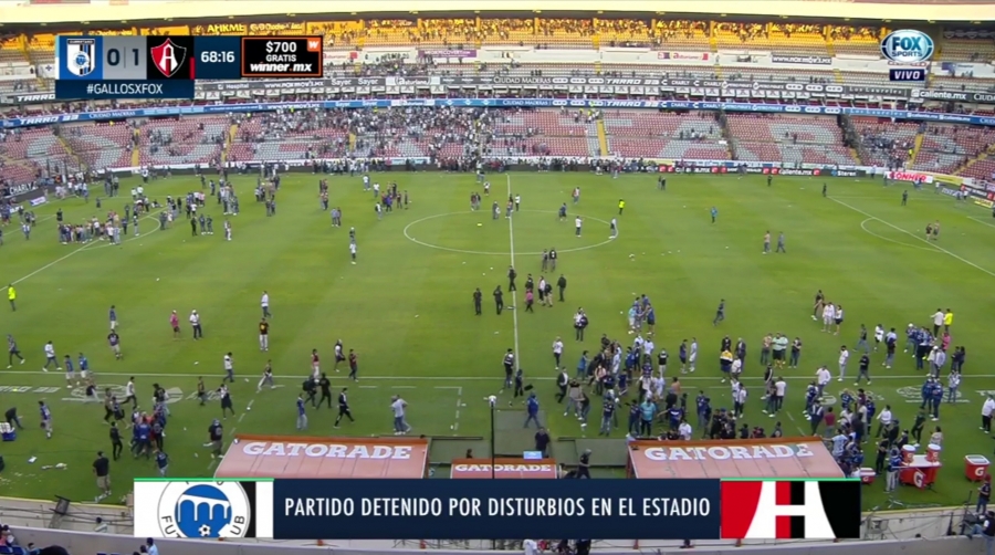 En imágenes que seguramente darán la vuelta al mundo, quedó de manifiesto la precaria seguridad del encuentro, la cual quedó evidenciada por los energúmenos que dieron al traste al evento deportivo.