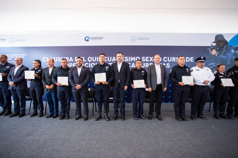 Compartió que hace unos meses daba inicio este curso, en el que 108 de los elementos, lograron 240 horas teórico prácticas. Hoy, dijo, se han ganado su reconocimiento, respeto y admiración. De la misma forma consideró de vital importancia la profesionalización de la policía queretana, la cual es referente nacional en el control de confianza y Banco de ADN. Asimismo, recordó que la entidad es la única a nivel nacional que cuenta con el Certificado Único Policial al 100 por ciento.