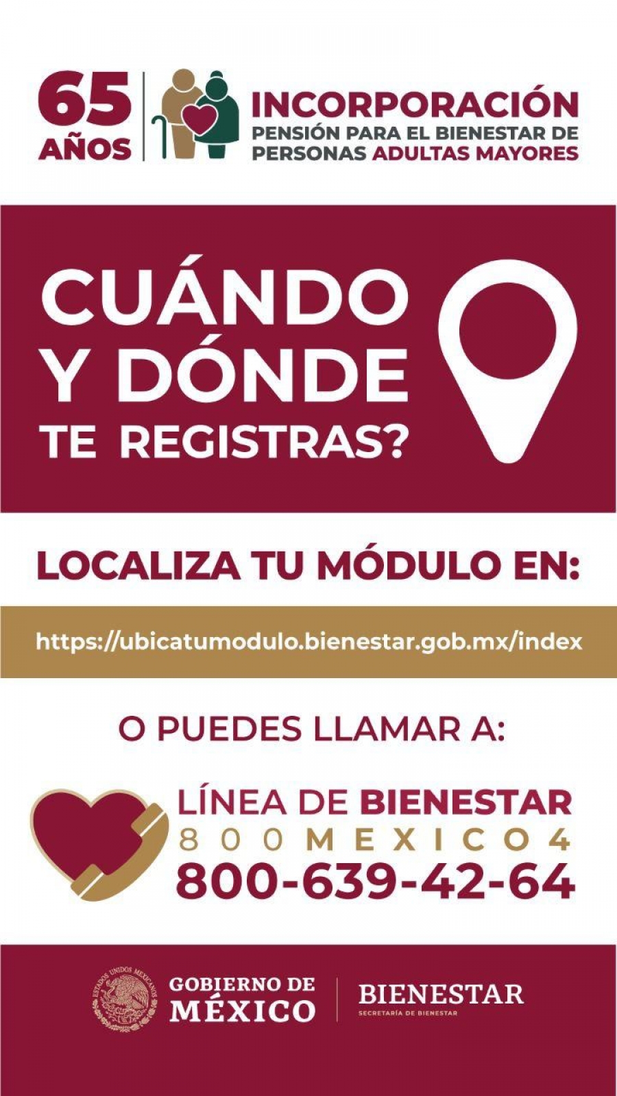 · Para conocer fecha y lugar de registro consulta https://ubicatumodulo.bienestar.gob.mx/index