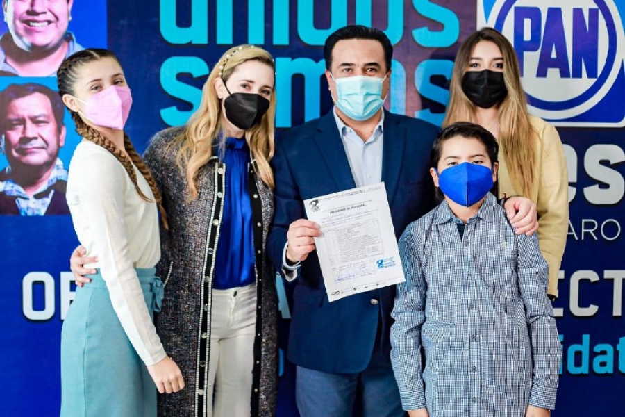 Querétaro, Qro., 31 de enero de 2021. Acompañado por su familia, Luis Nava se registró ante el Comité Directivo Estatal (CDE) del Partido Acción Nacional (PAN), como aspirante a la candidatura para la Presidencia Municipal de Querétaro; ahí, señaló que buscará la continuidad y la confianza de los queretanos para seguir haciendo de la capital una mejor ciudad para vivir. “No les voy a fallar”, afirmó.