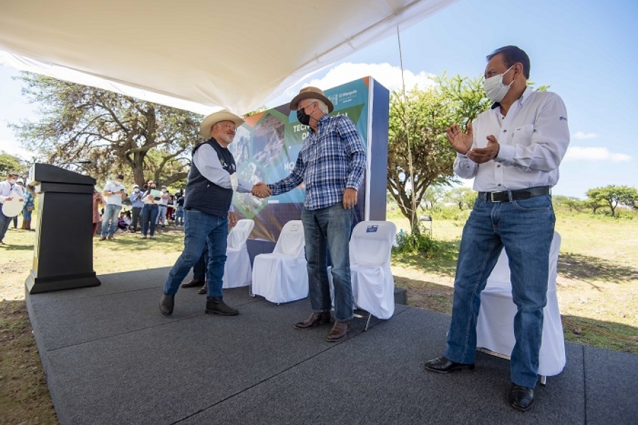 El Marqués, Qro., viernes 13 de agosto de 2021. Derivado de una acción tripartita entre gobierno federal, el estado y el municipio de El Marqués, el alcalde Enrique Vega Carriles y el titular de la Secretaría de Desarrollo Agropecuario (SEDEA), Carlos Heinz Dobler Mehner, llevaron a cabo la entrega de la obra de la Tecnificación de Riego de la Presa Noradino Rubio “Los Pirules”, con la cual impactará a 286 hectáreas de cultivo de las localidades de Alfajayucan y Presa de Rayas.