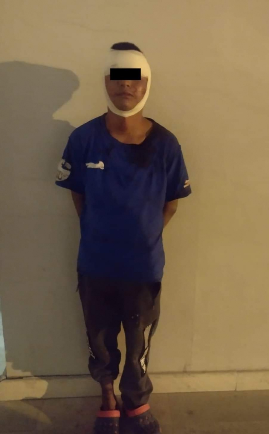 Al llegar al lugar, el personal operativo observó al masculino referido, quien le había causado una lesión en el antebrazo a su madre, motivo por el cual se realizaron las maniobras necesarias para detener al agresor.