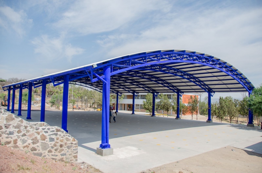 Más tarde, se dirigieron a la secundaria general Valentín Frías y Frías, en el fraccionamiento Los Héroes, en donde se realizó la entrega de una estructura de 14 columnas, que cubre una superficie de 935 metros cuadrados; aquí se aplicó una inversión de 5.36 millones de pesos, en beneficio de 500 estudiantes.