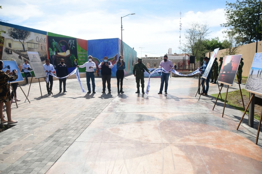 Ezequiel Montes, Qro., jueves 11 de agosto de 2022. Autoridades municipales y del Ejército Mexicano develaron la exposición fotográfica que refleja el intenso trabajo que realizan las mujeres y los hombres que orgullosamente pertenecen al ejército mexicano y, quienes para la ciudadanía, son un símbolo de lealtad, disciplina y patriotismo.