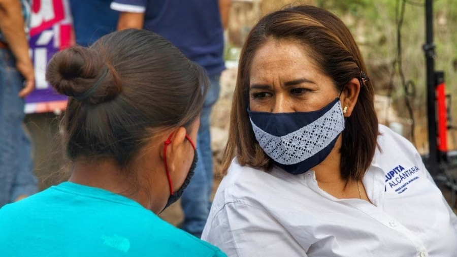 Tolimán, Querétaro, 12 de Mayo del 2021.-Clases de costura y de fabricación de manualidades, así como nuevas plataformas de apoyo para la venta de sus productos es la propuesta de la candidata del Partido Acción Nacional a la presidencia municipal de Tolimán, Lupita Alcántara.