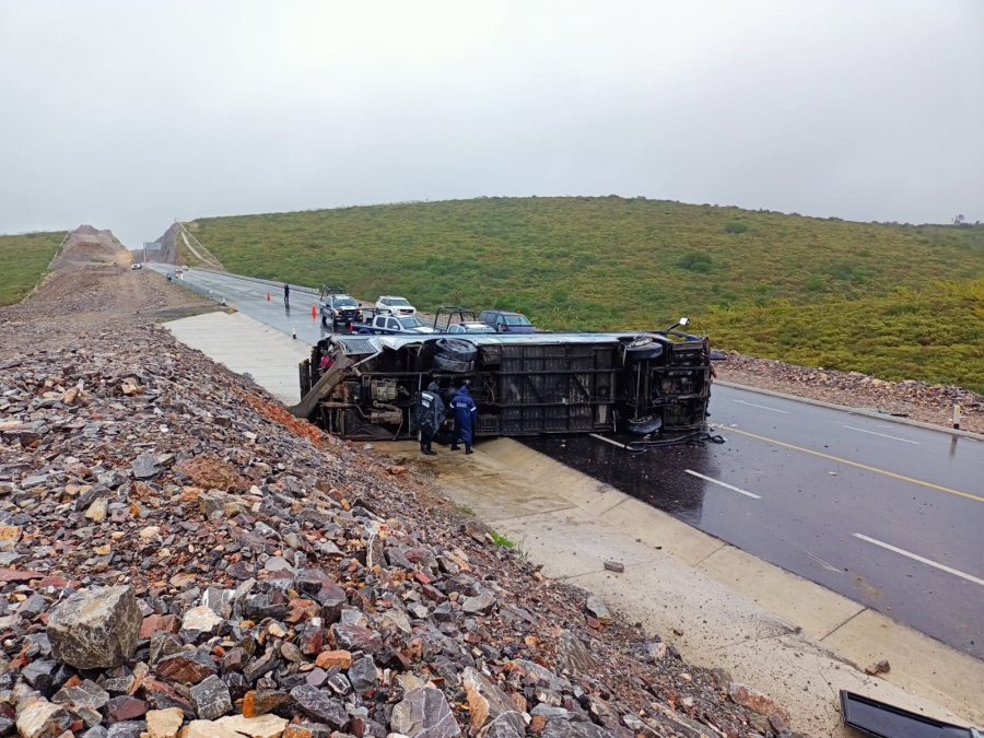 Asimismo, señaló que el chofer (fractura de pierna) y otro pasajero fueron trasladados al Hospital General de Cadereyta para recibir atención producto de las lesiones en esta volcadura.