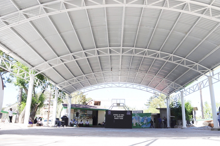 Fue en la escuela primaria Margarita Maza de Juárez en la comunidad en mención donde las autoridades realizaron la entrega de la techumbre de la cancha de usos múltiples.