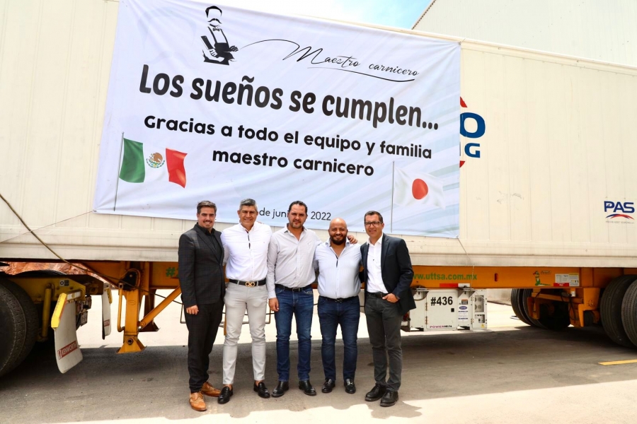 Realizando su primera exportación con destino a Japón, el Presidente Municipal de Colón, Manuel Montes Hernández acompañó al Director General, Ulises Llanes Sánchez y a Omar Carrizales López - socio de la empresa- para dar el banderazo de salida de la primera unidad.