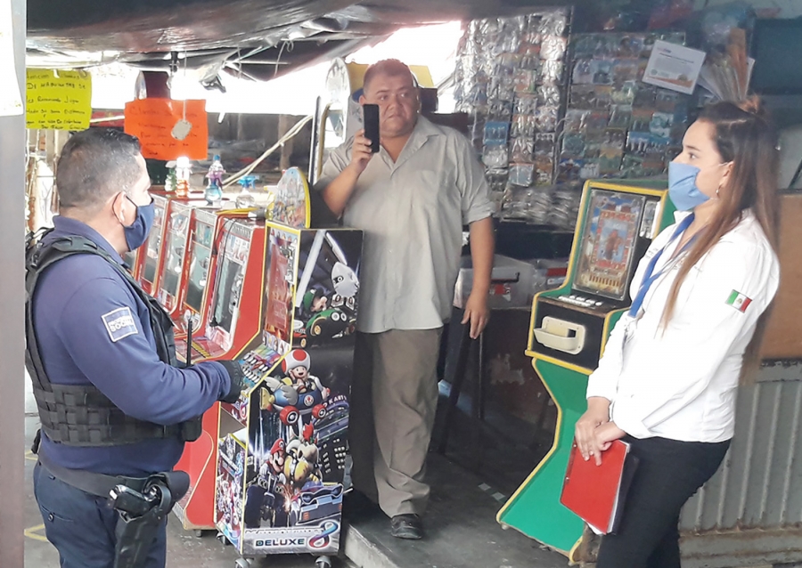 Omar Ramos, ante la presencia del personal de la Jurisdicción Sanitaria No. 04 y Policías Municipales, argumentaba que estaban siendo injustos con el cierre de una tienda de maquinitas y películas (DVD), por lo que tras defender, fue trasladado por los uniformados a las celdas preventivas de la Comandancia Municipal.