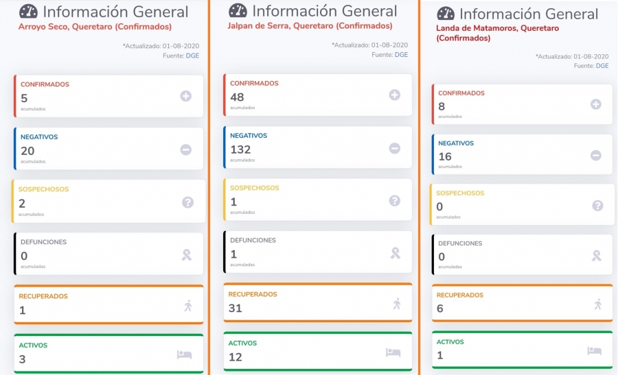 El resto de los municipios, Pinal (9), Peñamiller (3) y San Joaquín (3) mantienen sus números acumulados de casos confirmados.