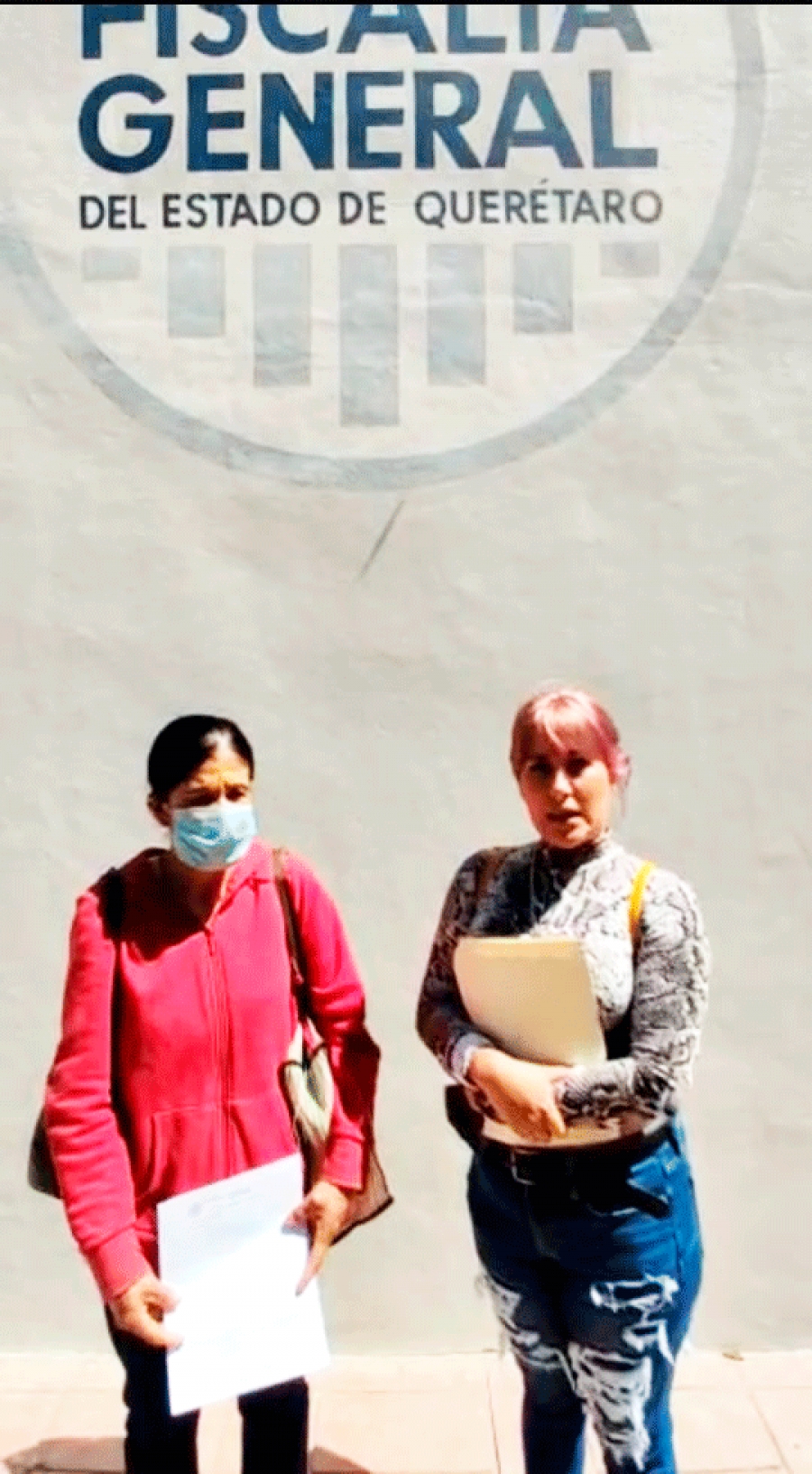 En el material videográfico las afectadas aparecen ofreciendo disculpas a Karina Careaga. Ahí se puede observar el fondo de pared donde aparece el logo de la Fiscalía General del Estado de Querétaro.