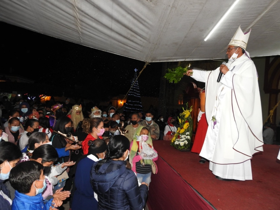 Durante la misa solemne, en compañía de presbíteros del decanato de la sierra, el obispo de la diócesis Monseñor Fidencio López Plaza, señaló que ha realizado visitas a las diferentes parroquias desde que fue nombrado obispo, para conocer a su gente, logrando conocer que el alma del decanato es su gente.