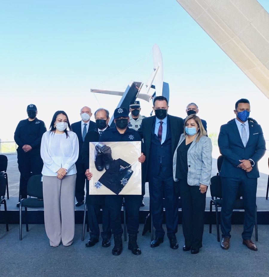 La Presidenta Municipal Lupita Ramírez Plaza, acompañó al Gobernador del Estado, Mauricio Kuri González, en la entrega de equipamiento y unidades a Instituciones de Seguridad y de Justicia del Estado por más de 34 millones de pesos, donde el municipio pinalense recibió equipamiento de uniformes para la Dirección de Policía Pública y Tránsito Municipal a cargo del Director, José Hipólito Pérez.
