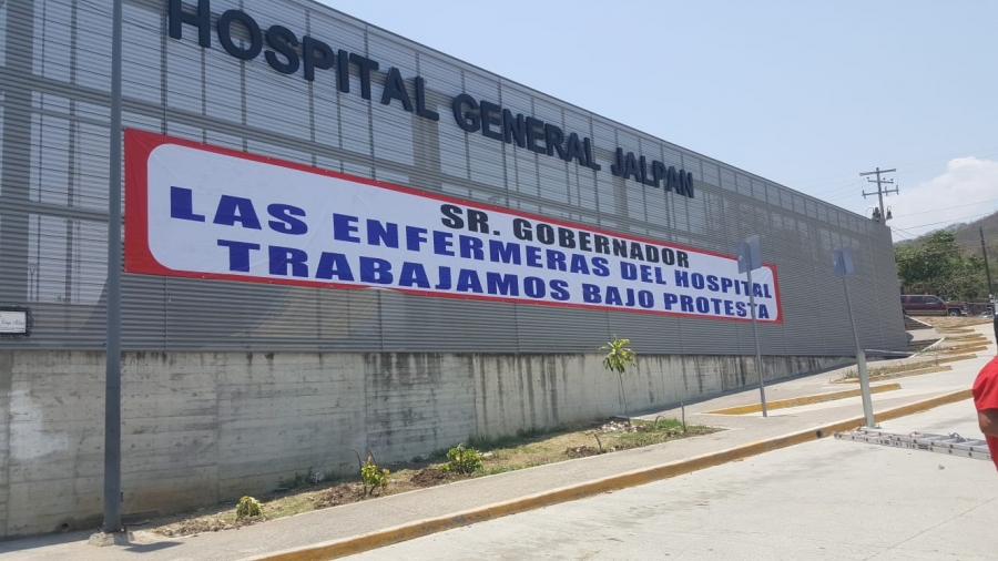 Esta mañana trabajadoras del Hospital General de Jalpan colocaron una manta donde señalan al gobernador del estado Mauricio Kury que trabajan bajo protesta, esto a raíz de la destitución de la jefa de departamento de enfermeras.