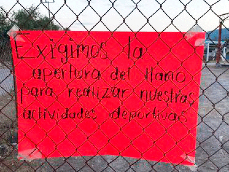 Por ello, decidieron colocar cartulinas en forma de protesta solicitando se abra este espacio público, así mismo solicitan la intervención de las autoridades pertinentes para que les hagan caso y ya no seguir exponiéndose a lastimarse cuando saltan la puerta.