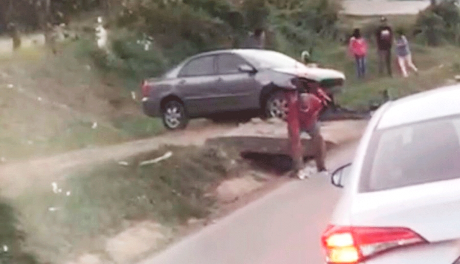 Al salir de la carretera, el vehículo cayó sobre la cuneta y se impactó contra una rampa, lo que provocó fuertes daños a la unidad motora.