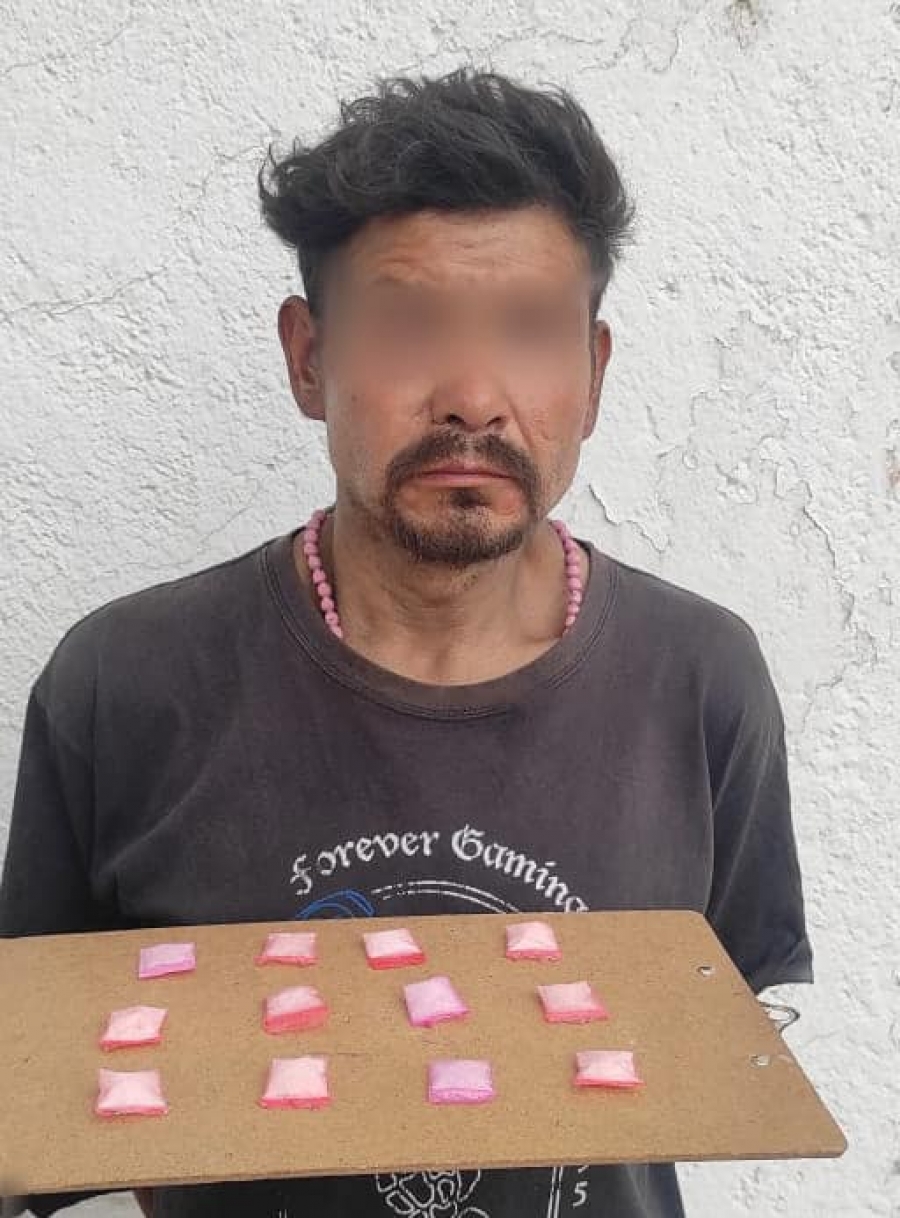 Al sujeto se le encontró entre sus pertenencias 13 paquetes plásticos con una sustancia similar a la metanfetamina, lo que constituye un delito contra la salud.