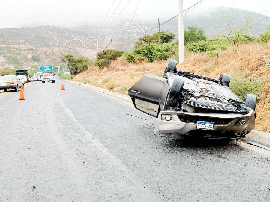 En un momento determinado al paso de un tramo recto con buena visibilidad, por lo mojado del pavimento la unidad derrapó, el conductor se descontrolo y se sobrevino la volcadura, quedando sobre la cuneta con las llantas apuntando hacia el cielo.