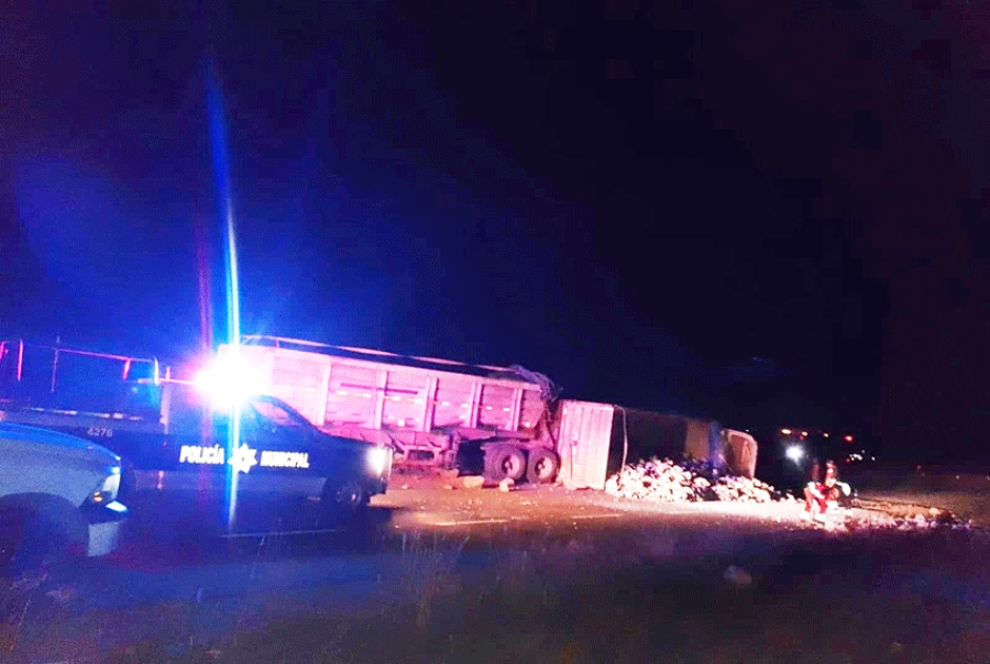 Personal Policial de Seguridad Pública y Tránsito Municipal de Cadereyta Montes, atendió un reporte de un hecho de tránsito en la carretera San Juan del Río - Xilitla, en donde un camión en color blanco con góndola se impactó contra el muro central ocasionando su volcadura y quedando su carga de mármol sobre la carretera, afortunadamente el conductor resultó sin lesiones de consideración.